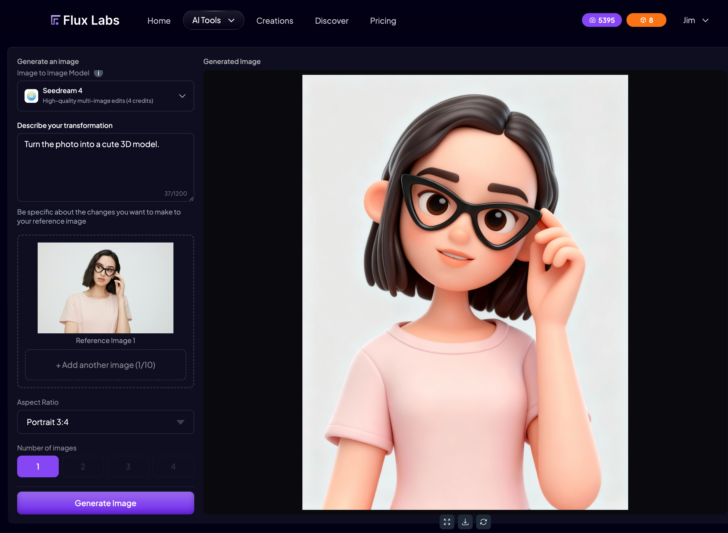 The first tool is Flux Labs AI. This is an AI image generator that's great at keeping character details consistent. You'll use it to turn your photo into a stylized, toy-like version of yourself or your pet.